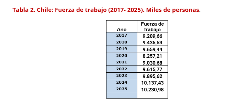 Entre 2017 y 2025 la fuerza de trabajo (ocupados + desocupados) creció en un millón de personas a una tasa de 1,3% anual, es decir, era necesario crear más de 100.000 empleos anuales para mantener la tasa de desocupación inicial (7,4% en 2017).