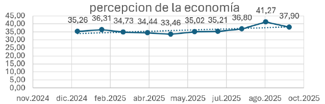 Como se aprecia en la gráfica 3 la percepción de la economía ha aumentado durante el 2025. Para efectos de comparación global el promedio de este indicador desde que se mide (enero 2022) es de 30,34.