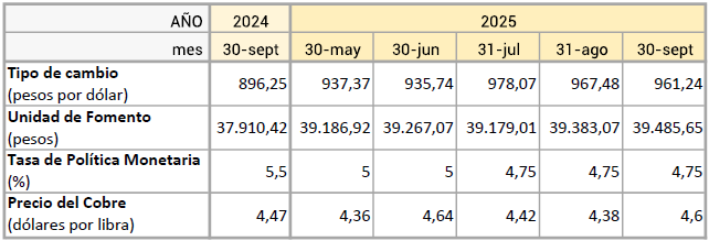 - El IPC de septiembre subió en 0,4% estableciéndose las proyecciones hacia fines de año el IPC por sobre el 3,6% proyectado anteriormente. Asimismo, los resultados del Imacec de agosto permiten proyectar en al menos 2,6% el crecimieto del PIB en 2026.
