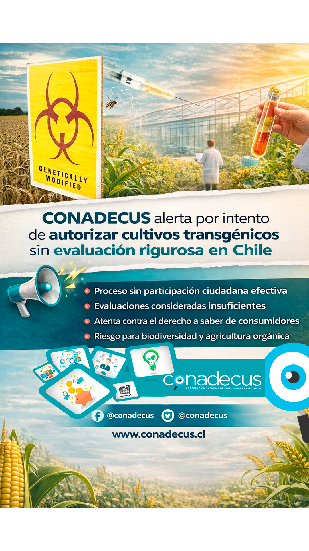 La Corporación Nacional de Consumidores y Usuarios de Chile (CONADECUS) ha manifestado su profunda preocupación ante los antecedentes que revelan un proceso impulsado por el Servicio Agrícola y Ganadero (SAG) para autorizar cultivos genéticamente modificados sin una evaluación integral de sus impactos. Según denuncias de diversas organizaciones sociales y ambientales, el procedimiento actual carece de transparencia, rigor técnico y participación ciudadana efectiva.