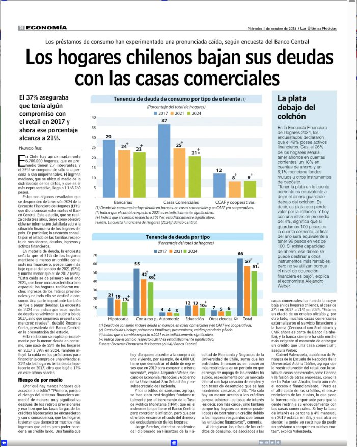 Este martes el Banco Central dio a conocer su Encuesta Financiera de Hogares EFH, estudio que se realiza cada tres años donde se detalla el estado de los hogares en relación a ahorros, deudas, ingresos y activos financieros. El sondeo confirmó una significativa disminución en la deuda por créditos de consumo. Disminución importante pero forzada por una serie de factores decisivos que impactan en el acceso a créditos como las tasas de interés, el encarecimiento de las cuotas, y los requisitos que se solicitan.