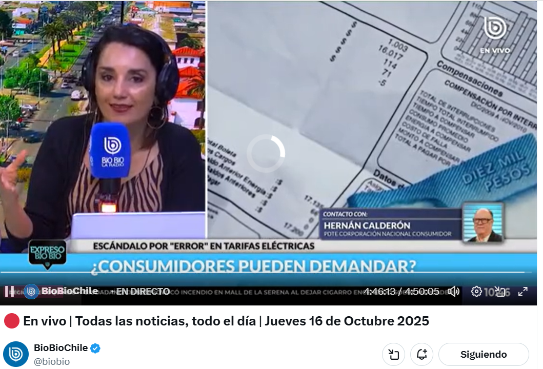 El presidente de la Corporación Nacional de Consumidores y Usuarios de Chile (Conadecus), Hernán Calderón, adelantó que buscarán cómo avanzar en la compensación de los consumidores tras revelarse un “error metodológico” que generó un aumento indebido en las cuentas de luz.
