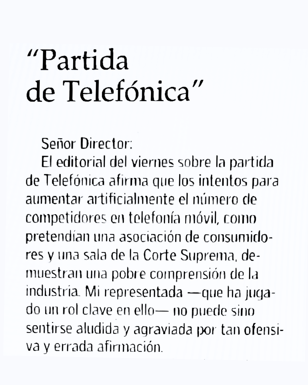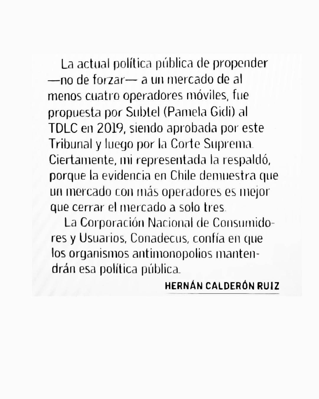 Lee la Carta al director de El Mercurio, del Presidente de Conadecus Hernán Calderón.